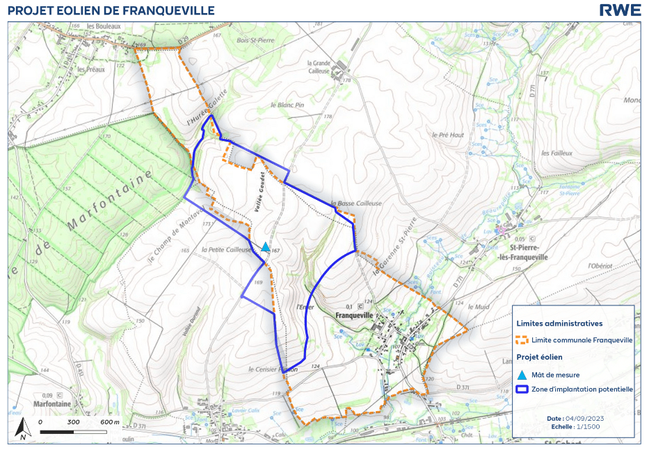 - Une distance minimale des éoliennes de 500 mètres aux habitations de Rougeries (500 m étant la réglementation en vigueur) et 600 mètres aux habitations de Franqueville ;
